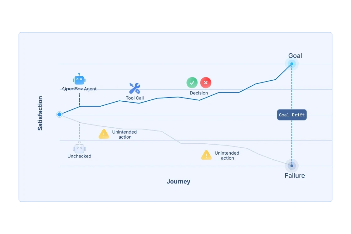 Most AI failures don’t start as major incidents. They begin as small deviations that go unnoticed. OpenBox surfaces and responds to these shifts early, before they accumulate into material risk or irreversible outcomes.