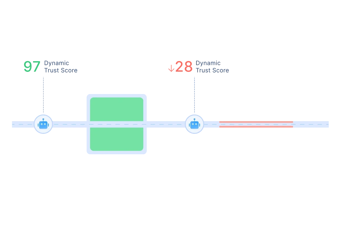 Agents are free to operate at speed, but never without oversight. A real-time trust score governs every action, allowing autonomy where it's safe and tightening control when risk increases.